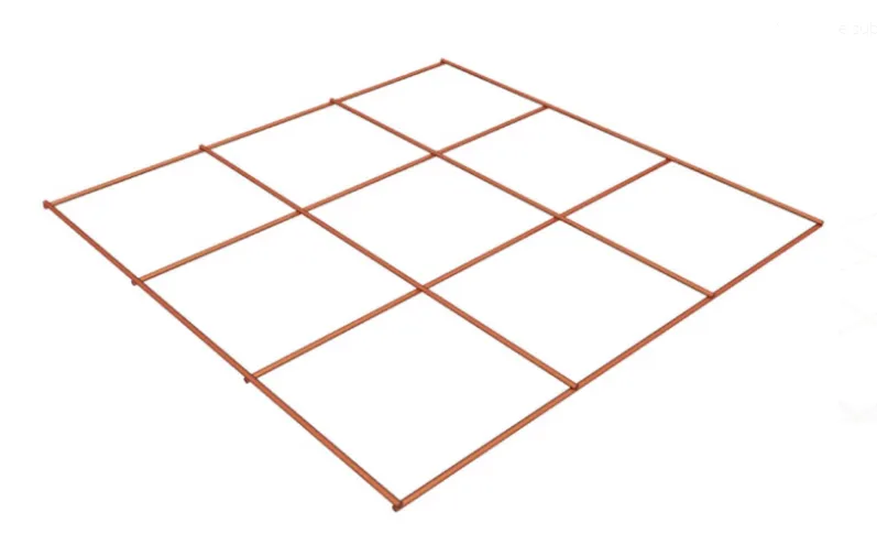 Fleje (platina) de cobre electrolítico para construcción de mallas de puesta a tierra. Tira plana de cobre de alta conductividad que se tiende formando una retícula sobre el piso, con uniones por soldadura exotérmica en cada cruce. Disponible en múltiples espesores y anchos según requerimientos del proyecto.